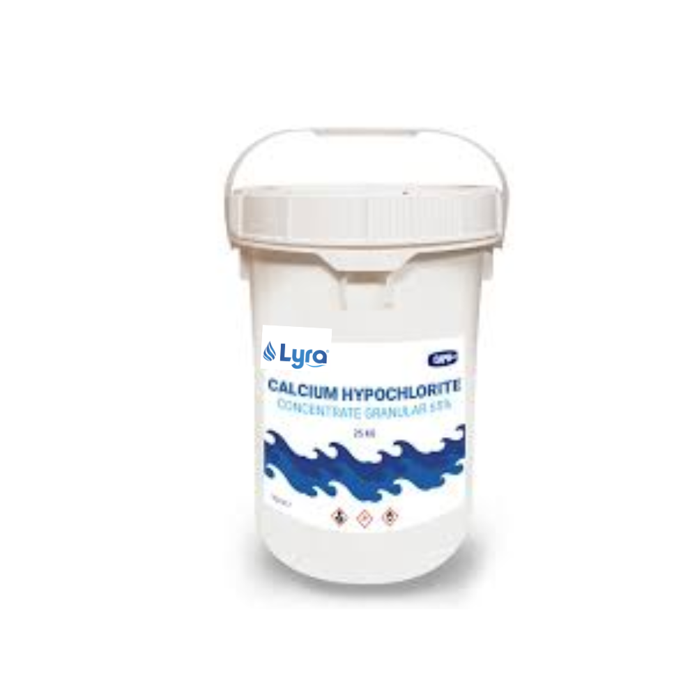 LYRA Calcium Hypochlorite is a high-quality disinfectant with 65–70% available chlorine, widely used for effective sanitation and water purification. It delivers fast and dependable action against bacteria and algae, ensuring safe, clear, and hygienic water.